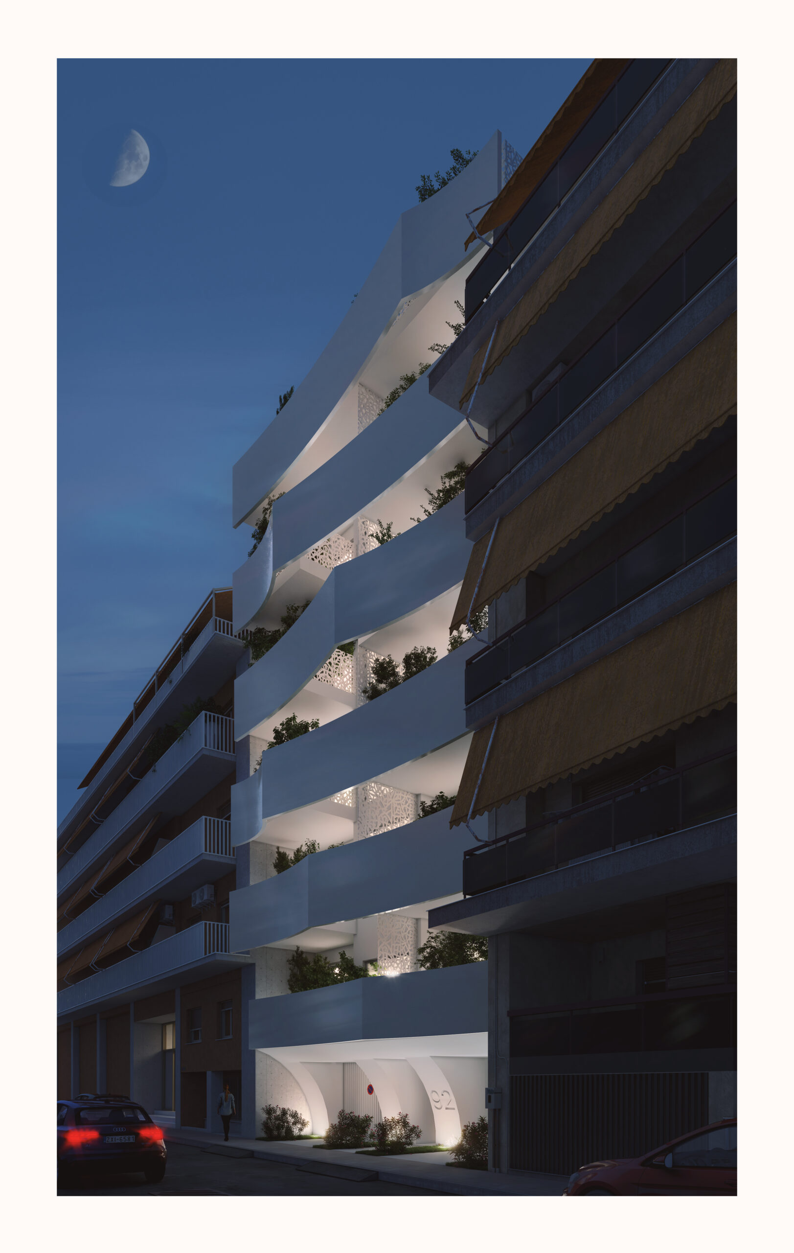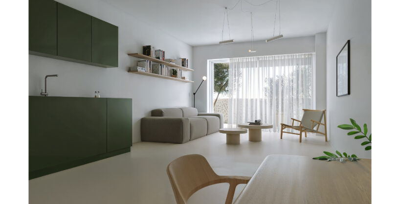 On the 3st floor of the new architectural proposal “Évrou Residences”, a meticulously designed 70 sq.m. apartment is available for sale, embodying Paul’s philosophy of ergonomics, aesthetic balance, and daily quality of life within the urban environment of Athens.