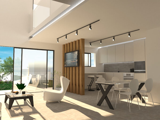 Αποτελείται από μεγάλο σαλόνι, ανεξάρτητη κουζίνα, τρία υπνοδωμάτια, μπάνιο και WC. Διαθέτει αυτόνομη θέρμανση πετρελαίου, κλιματισμό, ηλιακό θερμοσίφωνα, πόρτα ασφαλείας και κουφώματα αλουμινίου με διπλά τζάμια. Το διαμέρισμα περιλαμβάνει επίσης άνετες βεράντες, προσφέροντας ωραία θέα και άφθονο φυσικό φως καθ’ όλη τη διάρκεια της ημέρας.