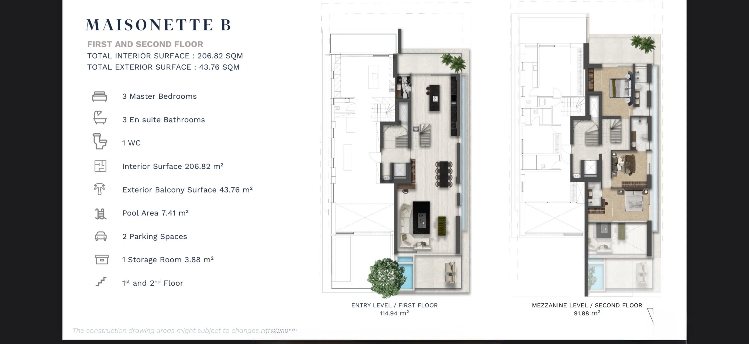 206.82 sq.m. | 3 Bedrooms | 3 Bathrooms + 1 WC | Private Pool 7.41| 2 Levels (1st & 2nd Floor)