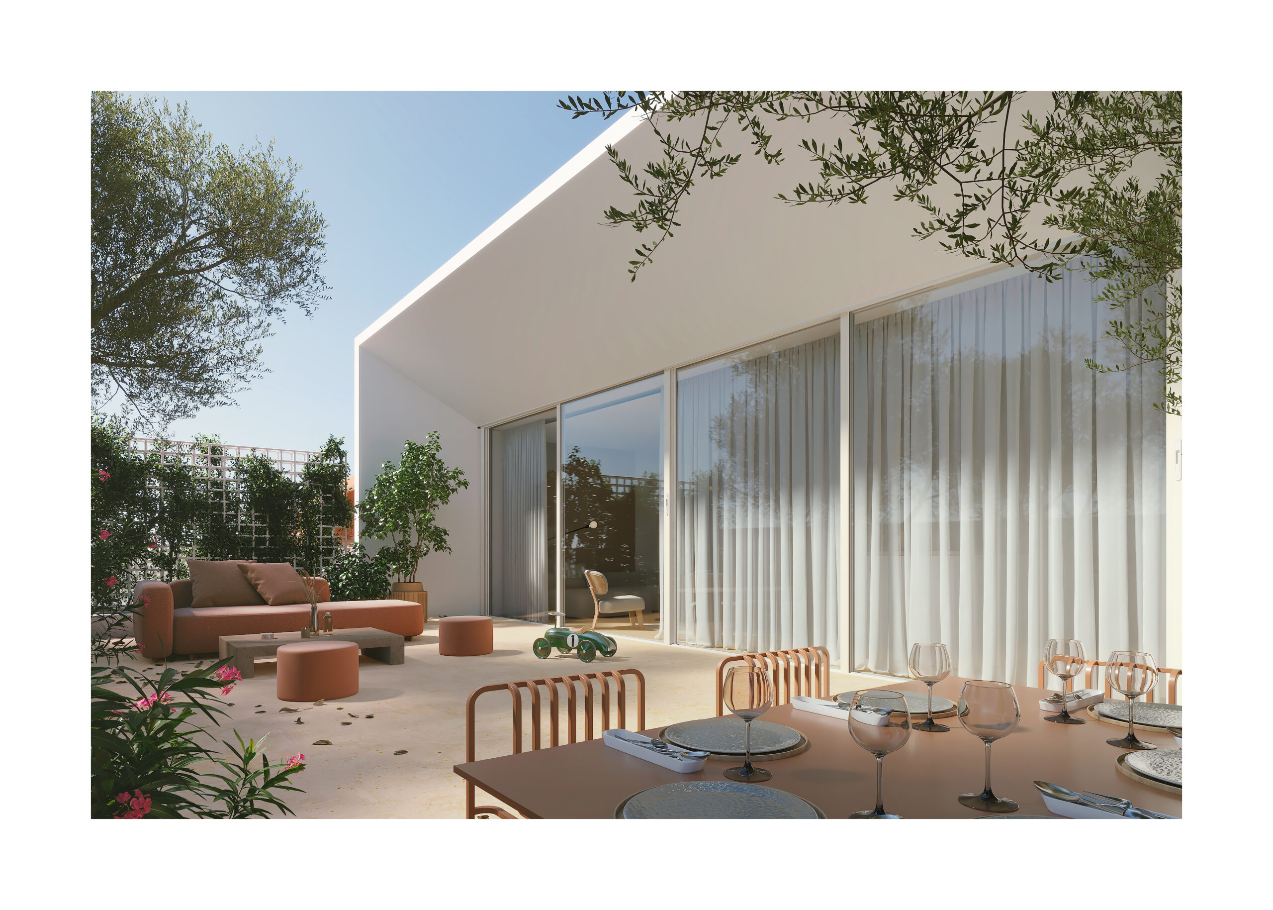 公寓正面连接一座 专属露台(5.05 米 × 10 米),超过 50 平方米的顶层户外空间,享有 无遮挡视野 与 绝对私密性。